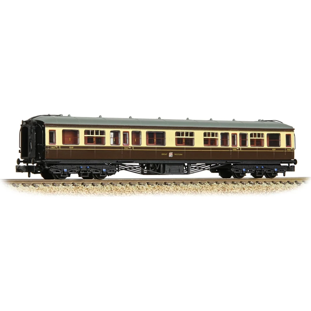 These N scale models of the GWR Hawksworth Coaches are one of the many jewels in the Graham Farish Rolling Stock fleet. Essential for any Western Region modeller, every coach is a faithful replica of the prototype and there are four vehicle types to choose from, allowing authentic trains to be created with ease. These include the Brake Third Corridor, Third Corridor and Composite Corridor, along with the Full Brake vehicle, whilst the Auto-Trailers designed by Hawksworth are also available in model form from Graham Farish.