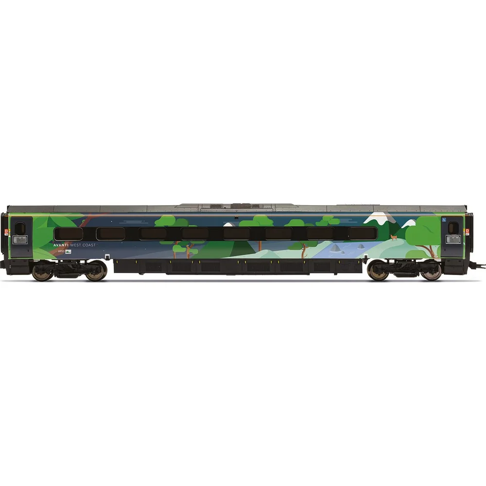 This Class 390 Coach Pack in its striking Climate Change livery includes Standard trailer cars B and D, and a Standard (including Shop) motor car with pantograph C.